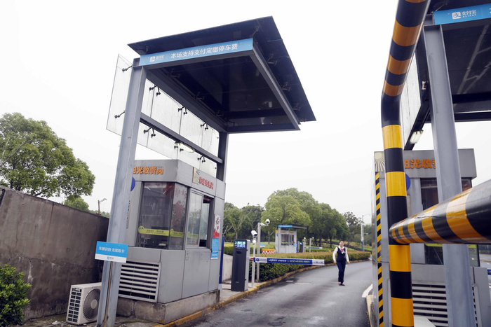 7、停车场出口的岗亭上公示了停车收费标准。有用户担心,“无感支付”会不会不安全?支付宝方面表示,经过技术测算,因车牌识别导致扣错钱的概率远低于十万分之一。如果用户想取消绑定,只需在支付宝首页搜索“停车”,进入停车在线缴费页面,花几秒钟解绑即可。