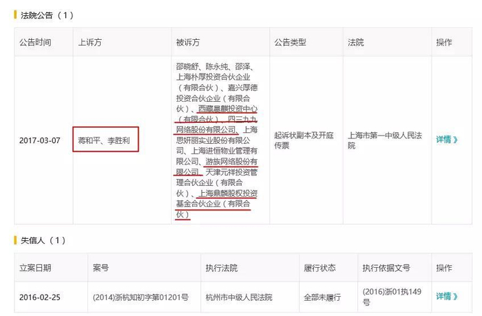 ▲蒋和平和李胜利曾起诉发行人4399、4399的股东晨麒投资、两人投资的上海鼎麟   资料来源:天眼查