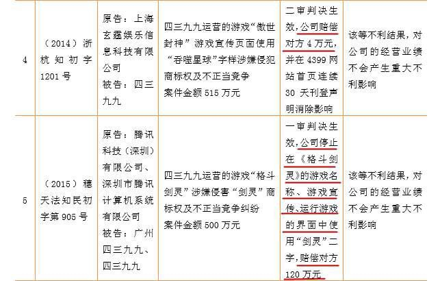 此外,4399涉及侵权案件较多,公司在招股书中也承认其存在“知识产权纠纷的风险”。