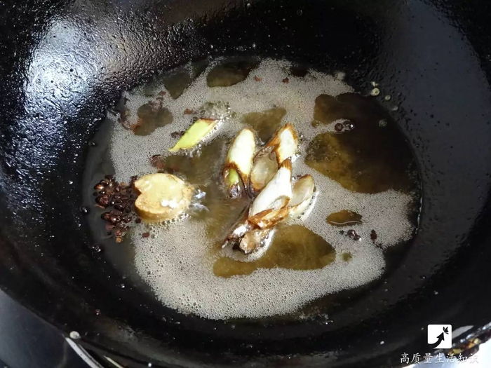 加入葱花,姜,花椒炸出香味