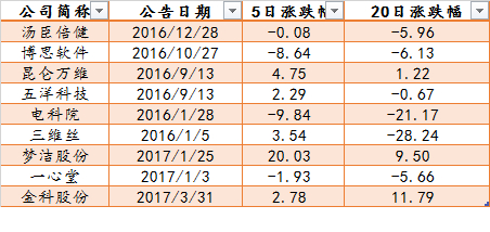 数据显示,离婚事件对上市公司短期影响不明显,虽然电科院、三维丝在公布后20个交易日跌幅较大,但更多可能与2016年1月的熔断行情有关。