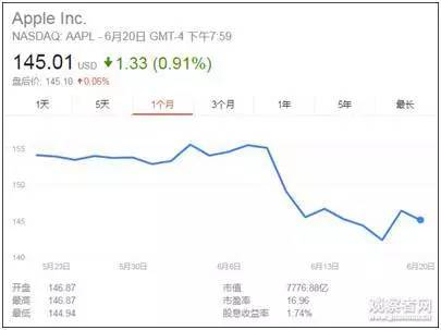 在证券市场上,苹果更是表现不佳。苹果公司的股价近期低迷,在6月9日-16日的6个交易日当中,股价跌幅达到8.3%,市值蒸发达670亿美元。