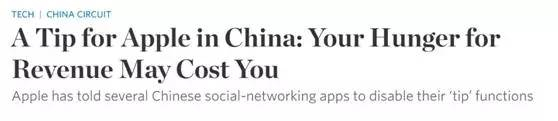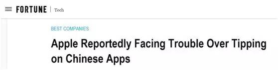《财富》杂志也点明了苹果陷入的麻烦:《据称苹果因对中国应用收取“打赏税”陷入麻烦》。