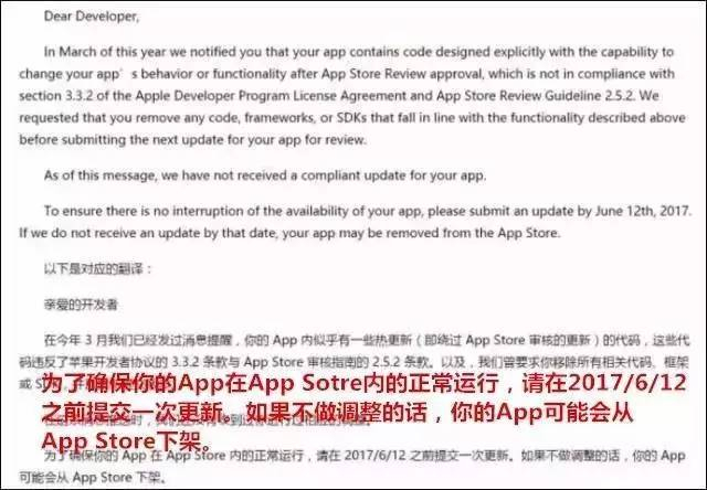 (App开发者收到的苹果公司禁止热更新警告)