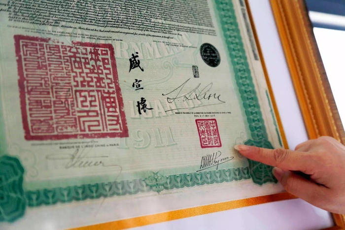 1911年,湖广铁路债券由东方汇理银行代理发行,邮传部尚书盛宣怀和驻法公使签名,并按有“邮传部”和“中华民国驻法代表印”图章。