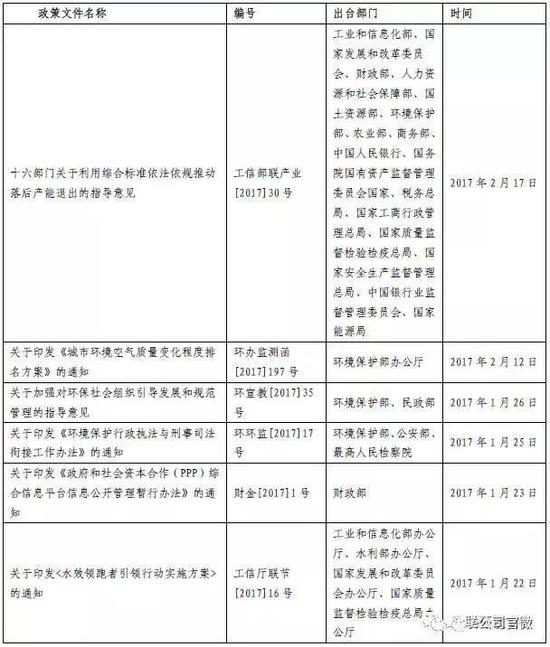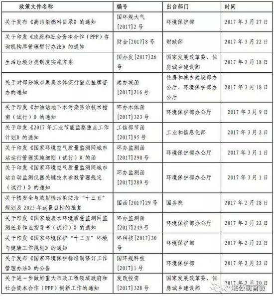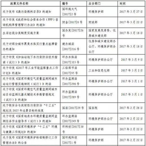 2017年被称作环保爆发年。全国工商联环境商会统计,截至2017年4月1日,国家发改、财政、住建、环保、工信等部门出台的相关环境政策多达30条。