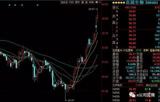 同样截至27日下午收盘,花园生物报涨5.05%至38.71元/股,较5月23日的25.9元/股也已上涨近50%。