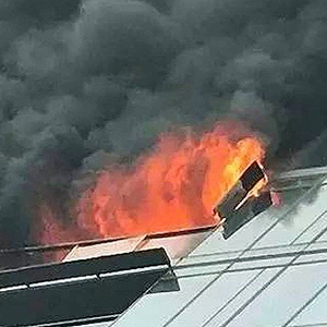 大火产生了浓烟,触发了安装在入户走廊顶部的烟雾报警器。