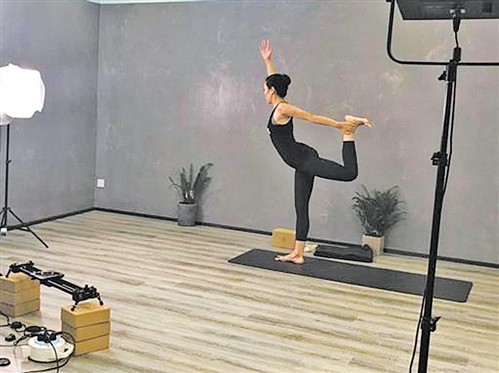 起步于线上教学视频的Wake瑜伽,一直非常重视教学视频的拍摄质量。图为Wake瑜伽教学总监董佳怡正在拍摄线上视频。经济日报记者 吉蕾蕾摄