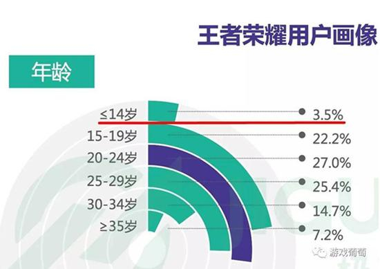 虽然葡萄君也不清楚小学生玩家占据《王者荣耀》用户的真正比例,但这个数据显然与其他数据相差太远:TalkingData的《王者荣耀热点报告》称,中小学生只占游戏玩家的2.7%;而极光大数据的《王者荣耀研究报告》显示,游戏中14岁以下的用户只占3.5%。