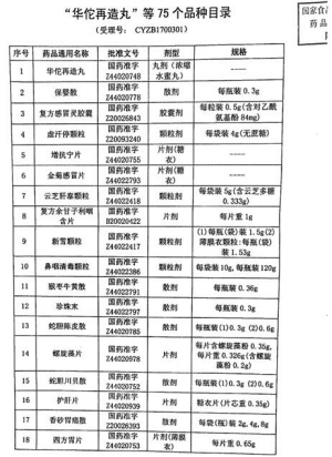 1、药物名称:华佗再造丸等75个品种