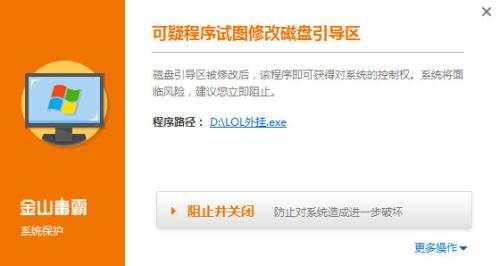 绿帽子病毒改写硬盘引导区的动作被拦截