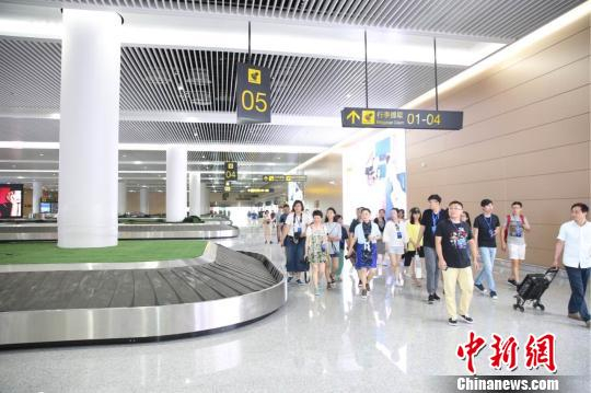 图为 媒体记者模拟旅客在T3A航站楼乘机的线路逐一参观。 主办方供图