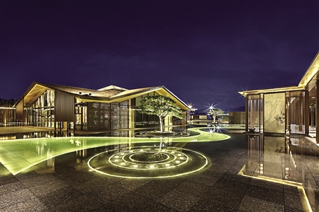 金科·九曲河在园林景观打造上更是别具匠心,仅从景观植物的选择便可窥一斑。示范区大门两旁的黑松、水上禅院“一池三山”造园手法中替代三山的三棵黑松、示范区西区大门旁的黑松、松涛亭外栽植的黑松,均从日本全冠移植,每一棵的造价均在六位数之上,不少松树树龄更是高达百年。