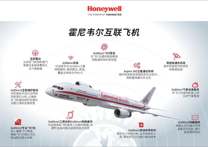 霍尼韦尔方面介绍,互联飞机的核心,就是发挥飞行数据的最大作用,在互联的航空系统里,所有重要数据将可以被自由接入、处理和共享。比如互联维护服务就是借助网络连接和数据分析来提升维保运营效率,缩短飞机停飞时间,确保航班准点起飞,减少服务中断,管理突发性维修。