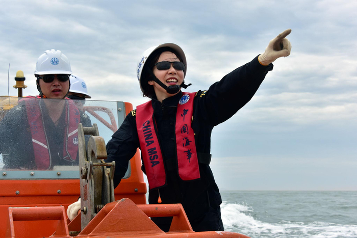 13时05分,第一财经记者被允许随救助艇下海。詹春佩在救助艇上负责指挥,并通过对讲机随时联系“海巡01”指挥平台。
