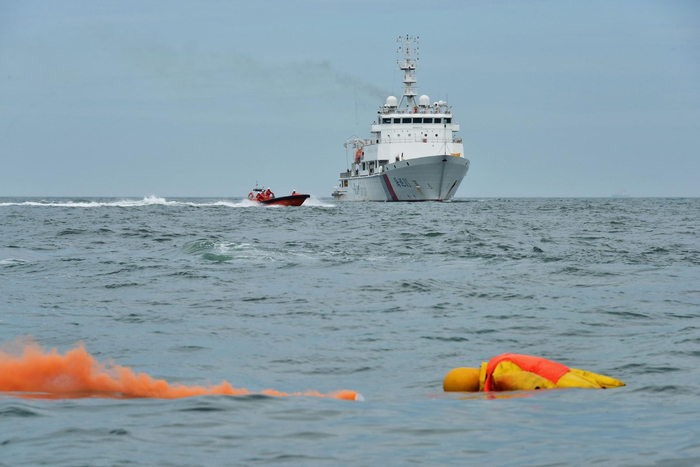 “马上将举行海上搜救演习。‘海巡01’号接到渔船求救报警,有5名船员落水,要迅速赶往出事地点实施救援。”9日中午13时许,“海巡01”轮三副詹春佩说:“搜救演习将于13时15分开始,45分结束。”