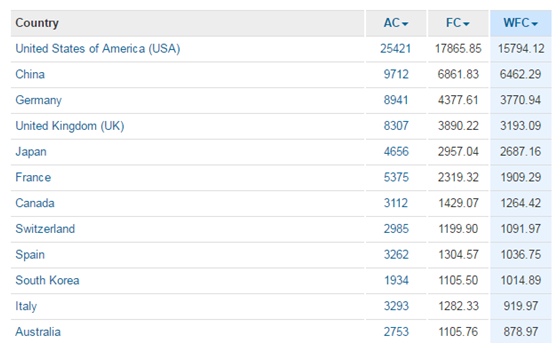 我们再看世界顶级科技杂志《自然》编写的自然指数,统计了68种全球影响力最大的科技杂志发表的论文,根据不同权重做了自然指数。下图是2016年2月1日—2017年1月31日的自然指数排名,WFC中国是6462.29,稳居世界第二,已经是日本的两倍以上,当然比美国的15794差距还很大。日本只排在世界第五。