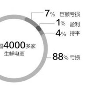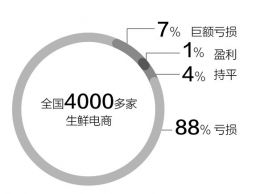 事实上,从2016年开始,资本热潮的过境让整个生鲜电商冷却下来,已有鲜品汇、菜管家、美味七七等十几家生鲜电商陆续出现问题。而2016年9月,中国农业生鲜电商发展论坛发布的数据显示,在全国4000多家生鲜电商中,只有1%实现盈利、4%持平,88%亏损,剩下的7%则是巨额亏损。
