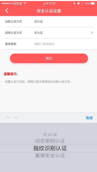 南京银行APP登录密码提供数字+字母组合密码,支持设置手势密码和指纹密码,每次登陆都需要输入图片验证码,登陆后可以查看上次登录具体时间。值得一提的是,用户可以根据实际情况自助设置安全认证,在转账汇款交易前增加动态密码认证、指纹识别认证或鑫盾安全认证。