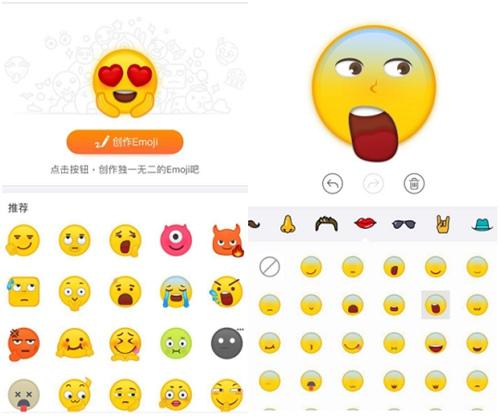 在新版搜狗输入法中,用户可以自己制作emoji表情,从脸型、五官到配饰,emoji的经典元素被切分出来,用户可以根据个人喜好随心创作,为经典赋予新的个性。此外,在iOS emoji的基础上,搜狗输入法在表情上还增加了更多选择,例如吐血、打哈欠等等,让情绪表达更加丰富到位。如此一来,当用户找不到适合的表情时,可以打开搜狗输入法,适时制作一款属于自己的、独一无二的emoji表情。