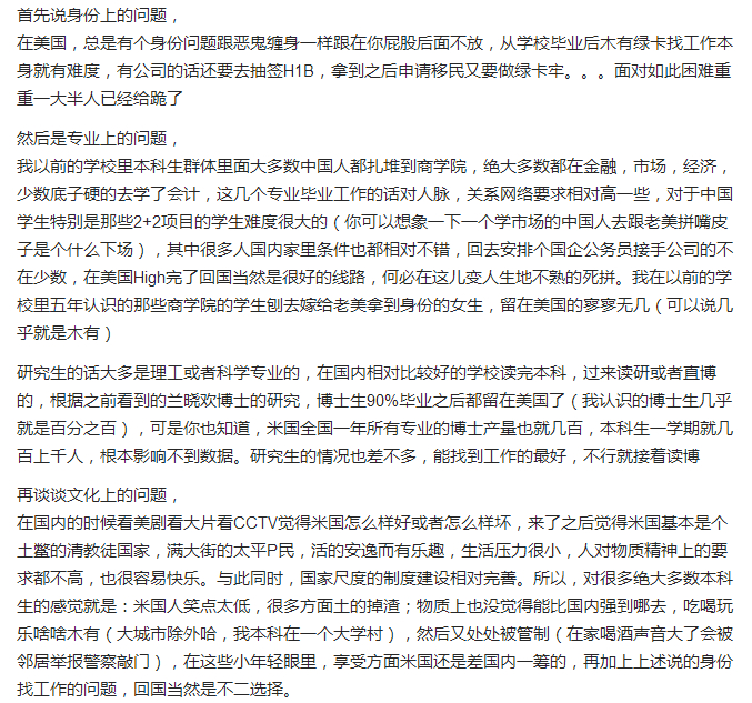 知乎上网友的回答更是体现了留学生的“中国情怀”。一名网友以亲身经历说明每个地方都有值得留下的理由,但属于中国人的身份只有在国内才能找到: