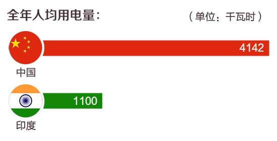虽然印度经济发展也很快,但无论是经济发展还是电力发展水平,都和中国还存在一定的差距。