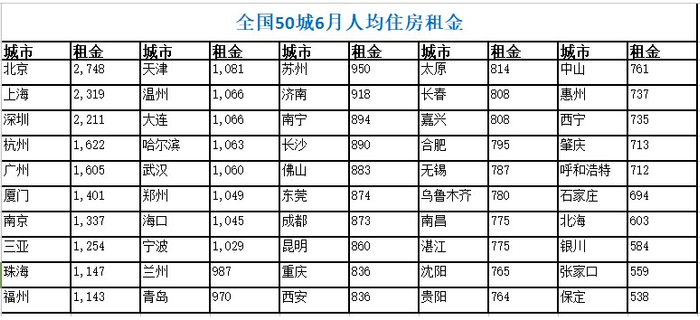 各城市房租比较:京沪深人均租金超2000 这些城市租赁房发展空间大