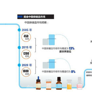 根据罗兰贝格最近发布的《“十三五”时期中国保健品行业制胜策略》,中国保健品市场在2015—2020年的年均增速约为8%,市场规模到2020年时约为1800亿元,并将在可预见的未来超越美国成为世界第一。