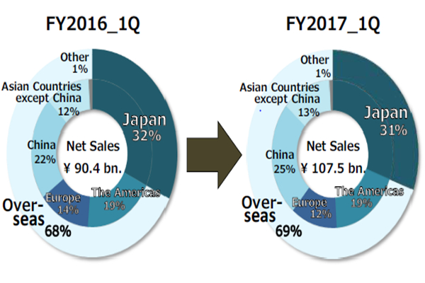 在中国市场,安川电机2017财年第一季度营业额达到269亿日元,相较于去年同期大幅增长32.1%,中国也成为安川电机除了日本本土之外最大的单一国家市场。正因如此,安川电机在2017财年一季报时表示,公司销售和利润的大幅增加主要归功于中国市场需求的快速增长。