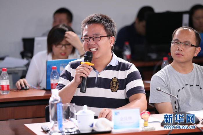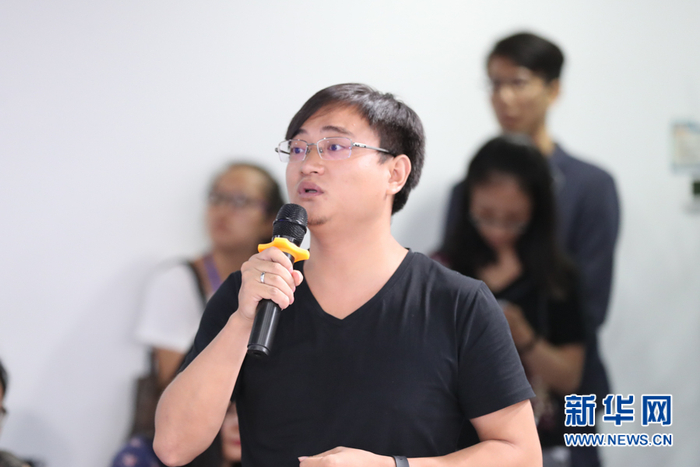 新华社摄影记者金良快在互动环节提问 新华网记者陈竞超 摄