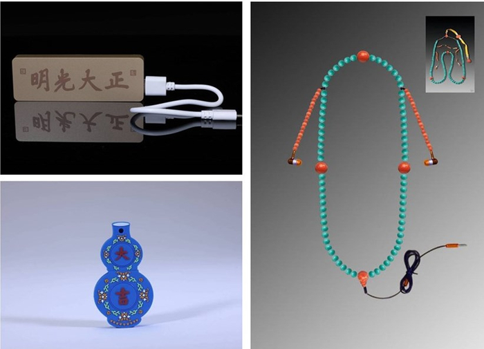 图为正大光明充电器、大吉葫芦U盘、朝珠耳机