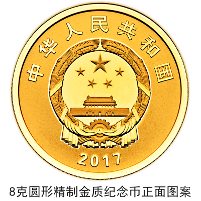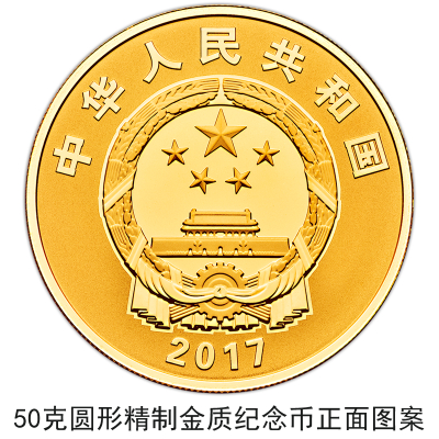 金质纪念币和银质纪念币正面图案均为中华人民共和国国徽,并刊国名、年号。