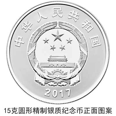 5.15克圆形银质纪念币为精制币,含纯银15克,直径33毫米,面额5元,成色99.9%,最大发行量5×50000枚。