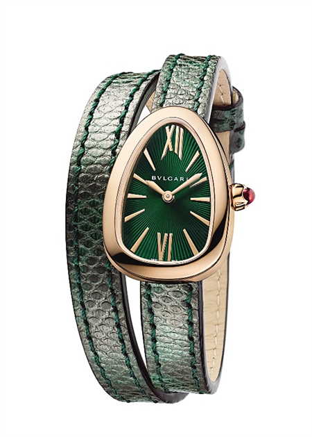 宝格丽 Serpenti系列的灵蛇形象,佩戴者可根据心情随意搭配不同材质的绚丽表壳。