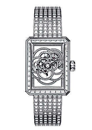 香奈儿 此深邃黑色镂空装置搭配宝石镶嵌,风格独特,演绎品牌经典图腾。