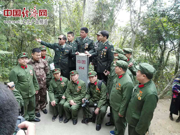 史光柱向战友们介绍当年主攻营收复57、54号高地的历程
