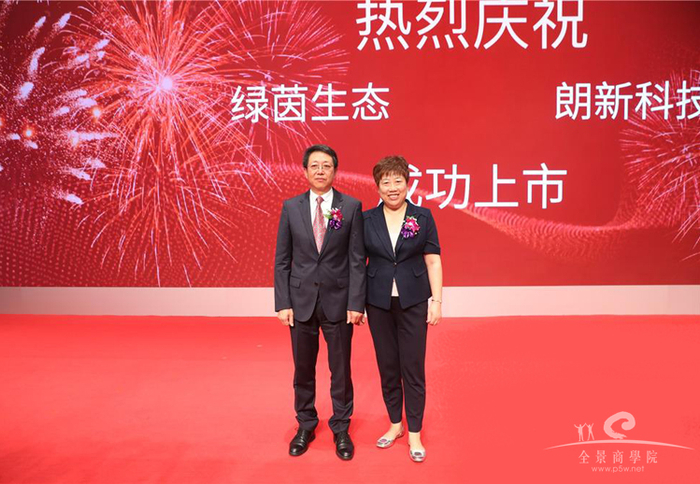 绿茵生态董事长卢云慧、总经理祁永夫妻在上市仪式上合影留念