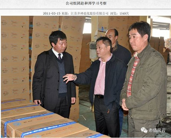为推动“学和邦”活动深入开展,3月11日(注:2011年),井神股份公司副总经理、淮安碱厂厂长丁超然率领公司“学和邦”考察团一行19人,对四川和邦集团进行实地考察学习。考察团一行参观了和邦集团制盐、纯碱、食盐包装等生产现场,听取了和邦集团总裁曾小平所作的情况介绍,并与和邦集团就企业发展战略、管理模式、人才培养、资本运作等方面进行了交流。
