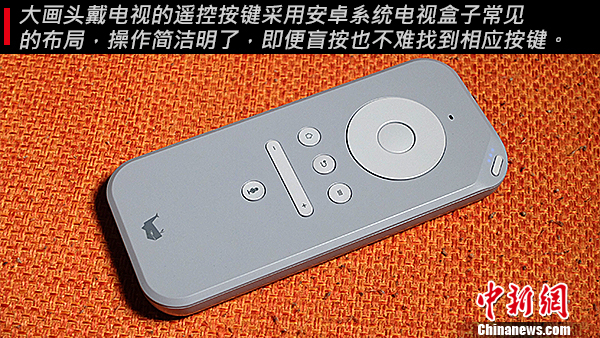 外观来看,大画头戴电视由一个VR眼镜和一个遥控组成,单从外观来看似乎没有找出与其他类似VR产品的区别。不过,直观来看大画的做工可以说是严丝合缝,细磨砂的表面手感也不错。另外,整体便携性也较强,完全可以装到包里出差旅游使用。