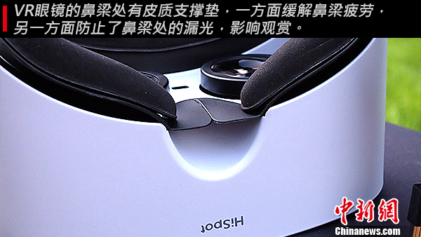 大画的产品在细节方面也非常注重,贴面处应用了大量的软性材质,尤其是与皮肤接触的地方,相对其他产品的海绵或橡胶材质来看,大画采用的细腻纺织材质,不仅肤感舒适,而且透气不会积汗,更适合长时间的使用。而鼻梁处的皮质撑垫,不仅可以缓解长时间使用时鼻梁的疲劳,还能防止漏光,影响观赏。