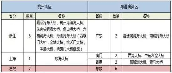 表8:杭州湾区及粤港澳湾区跨海大桥数量对比