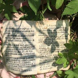 李文星尸体水坑外发现的疑似“传销笔记”。新京报记者 李明 摄
