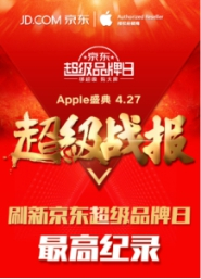 4月27日“京东超级品牌日·Apple产品盛典”创造了京东超级品牌日活动的历史最高销售记录,这是Apple官方在中国首次与电商平台联合开展品牌专场活动,也成为了Apple全球优秀营销案例;