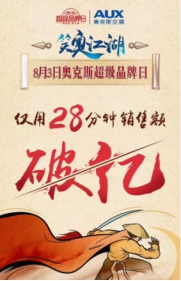 在刚刚过去的8月2日,京东联合大疆开展了“京东超级品牌日·大疆盛典”。持续全天24小时的活动,创下了大疆在全球范围内的单日最高销售记录;在大疆活动次日上线的“京东超级品牌日·奥克斯盛典”,仅用28分钟就实现了销售额破亿,创奥克斯在线上线下全渠道的单日销售最快破亿记录。