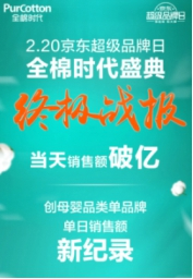 2月20日“京东超级品牌日·全棉时代盛典”全天销售额破亿,创造了京东母婴品类单品牌的销售额新纪录;