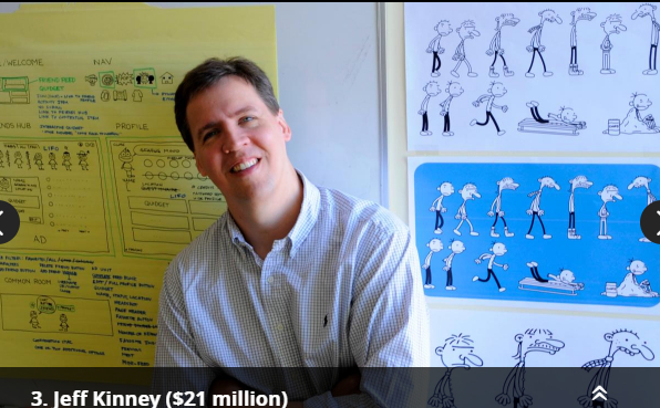 第三名:杰夫·金尼(Jeff Kinney, 2100万美元) 代表作:《小屁孩日记》(Diary of a Wimpy Kid)