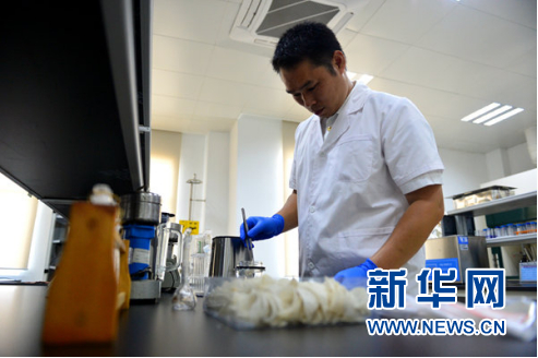 8月2日,在国家燕窝及营养保健食品检测重点实验室(钦州),工作人员在对进口燕窝产品进行营养成分检测。新华社 李绚丽 摄