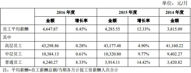 卫生巾卖得好,对员工薪酬也有一定助益。数据显示,2016年,百亚股份2264名员工的平均月薪为4647.87元,高于重庆市城镇私营单位(3945.42元)和制造业城镇私营单位(4093元)的平均水平。