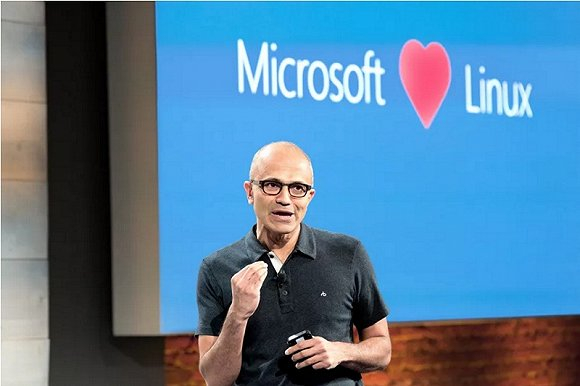 一条不太会被一般用户注意到的消息是,2016年11月,微软宣布加入Linux的基金,这意味着微软从此像思科、惠普等公司一样,每年至少向这个基金支付500万美元,这也是微软CEO萨提亚用更坚定的声音告诉外界,微软和Linux达成了和解。他在多个场合用一张幻灯片,“微软爱Linux”,这多少会让人发笑,毕竟他们斗了许多年。